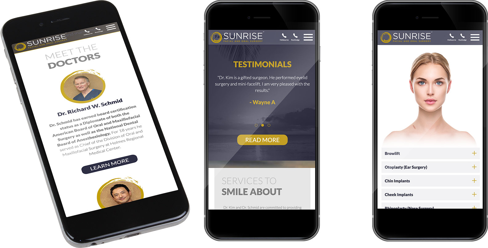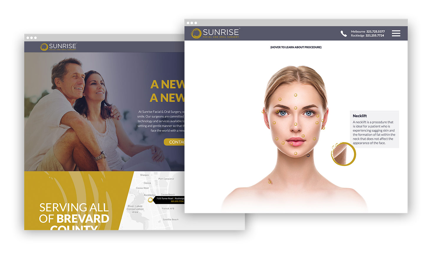 Sunrise Facial and Oral Surgery was formerly New Image Oral and Maxillofacial Surgery, a business that dealt strictly in oral surgery. Once the surgeons decided to evolve their company and include facial cosmetic surgeries to their procedures they needed a new look, a new website and a new content marketing strategy to draw in new patients, serve existing patients and continue to establish their reputation in Brevard County and Central Florida.